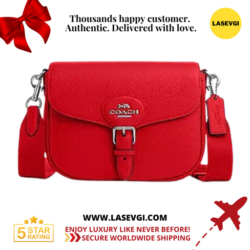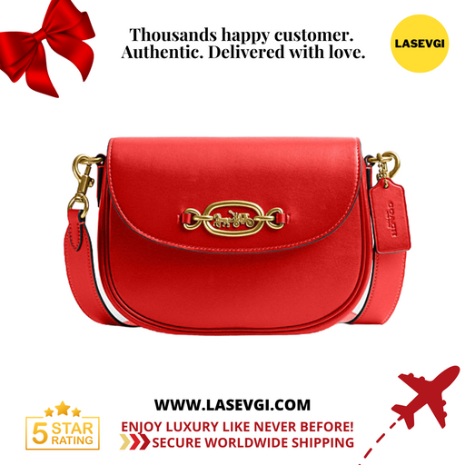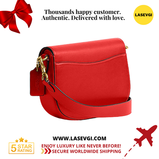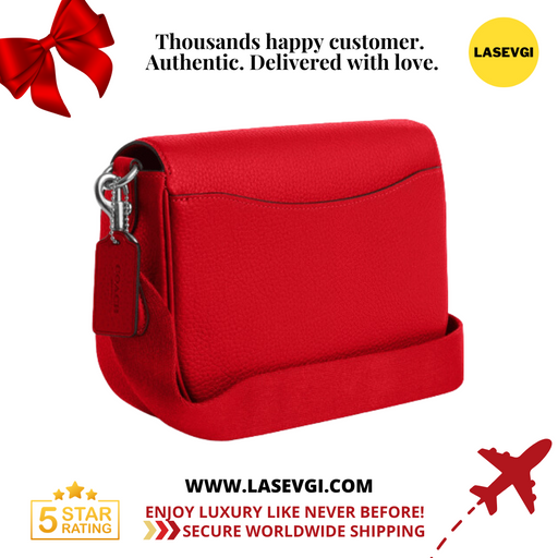 🥰 ABOUT THIS BAG COACH Amelia Saddle Bag in Bright Poppy Red Soft pebble leather Inside multifunction pocke...