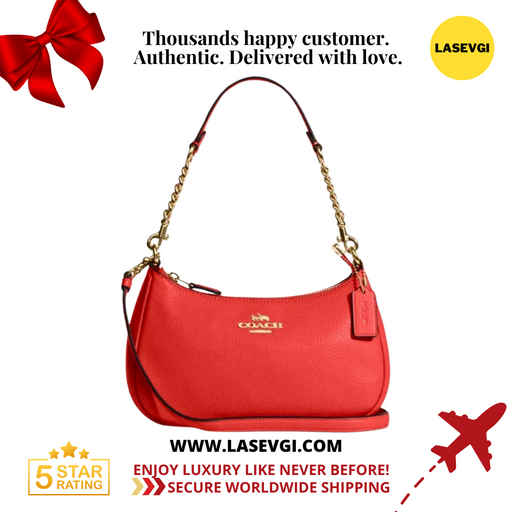 🥰 ABOUT THIS BAG COACH Teri Shoulder Bag in Miami Red - CA209 >> Style no: CA209 Refined pebble leather Two credit card slots Inside mu...