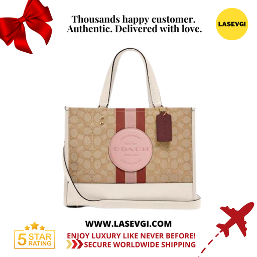 Out of stock🥰 ABOUT THIS BAG>> COACH Dempsey Tote 22 In Signature Jacquard With Stripe and COACH Patch/White>> Style no:C8417 ✅Signature jacqu...