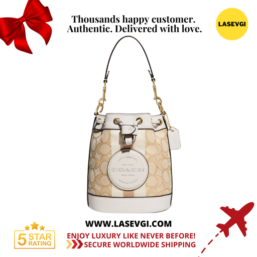 In stock🥰 ABOUT THIS BAG COACH Mini Dempsey Bucket Bag In Signature Jacquard With Stripe And Coach Patch-White C8322 >&g...