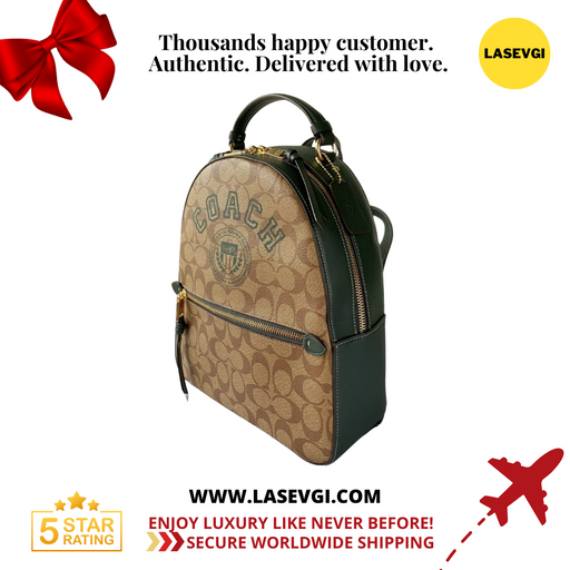 🥰 ABOUT THIS BAG COACH Jordyn Backpack In Signature Canvas With Varsity Motif Green CB871 >> Style no: CB871 ✅Crossgrain leather✅Inside zip ...