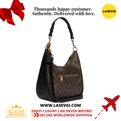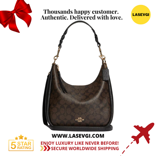 🥰 ABOUT THIS BAG COACH Jules Hobo in Signature Brown Black - C9189 >> Style no: C9189 Signature coated canvas refined pebble leather and sn...