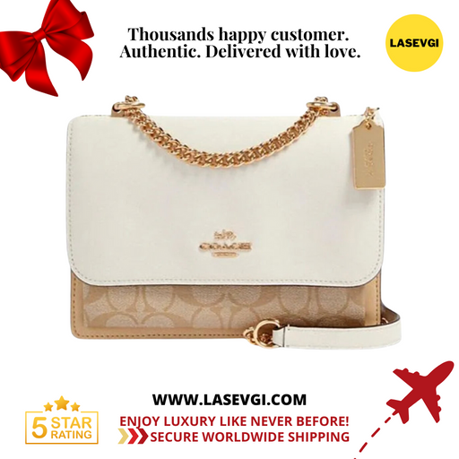 In stockCOACH Klare Crossbody in Signature Canvas Khaki Chalk 90635 Style No: 90635 Smooth leather Signature coated canvas and snake-embossed l...