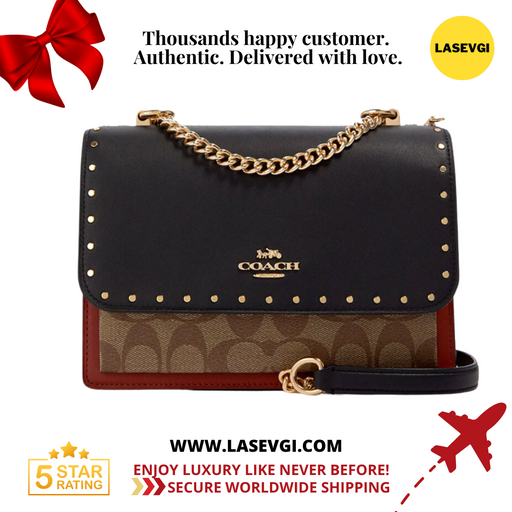 COACH Klare Crossbody in Signature Canvas with Rivets Khaki Multi 90400 Color : Black & Rivets Smooth leather, Signature coated can...