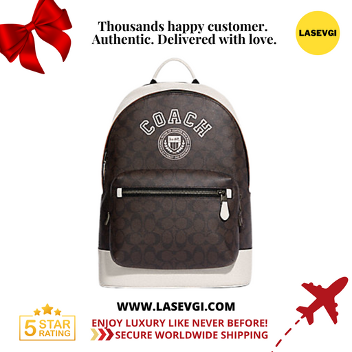 COACH West Backpack in Signature Canvas with Varsity Motif Mahogany Chalk CB909>>Style No: CB909✅Signature coated canvas and refine...
