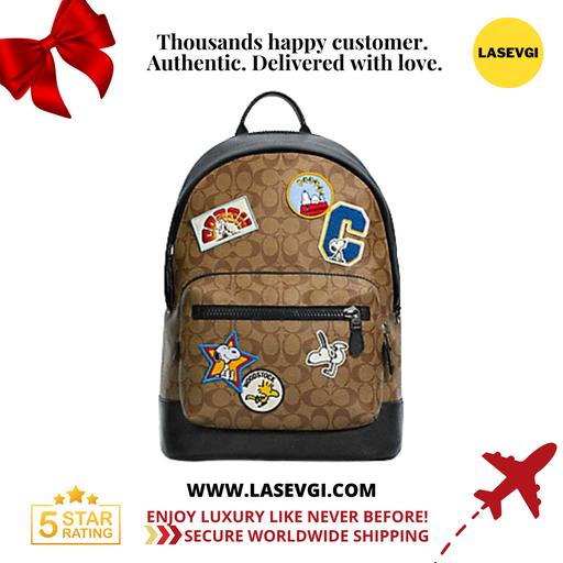 Coach X Peanuts West Backpack In Signature Canvas With Snoopy 5511>>Style No: 5511 Signature coated canvas and refined pebble leat...