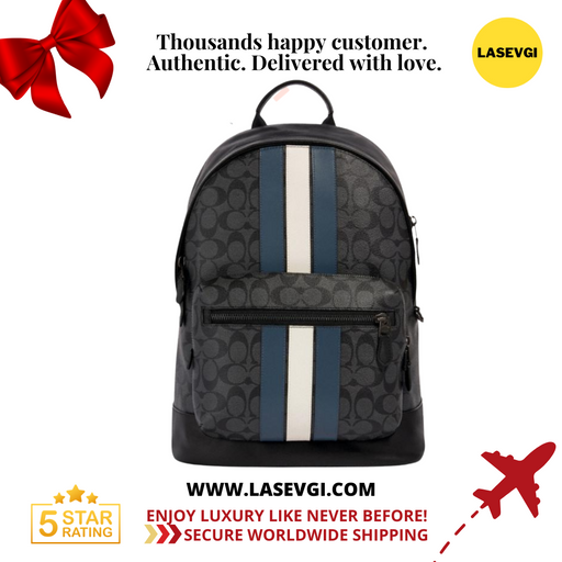 COACH West Backpack in Signature Canvas Varsity Stripe 3001>>Style No: 3001 ✅Signature coated canvas and refined calf leather✅Two s...