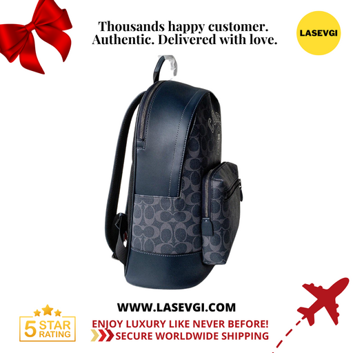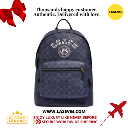 COACH Men West Backpack in Signature Canvas - Varsity Motif Blue CB909>>Style No: CB909✅Signature coated canvas and refined calf le...