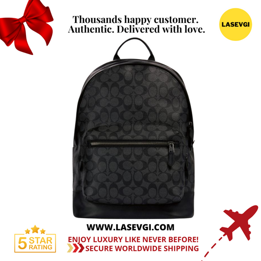 COACH Men West Packpack in Signature Canvas Charcoal Black 2736>>Style No: 2736✅Signature coated canvas and refined calf leather✅Tw...