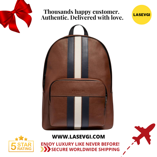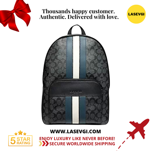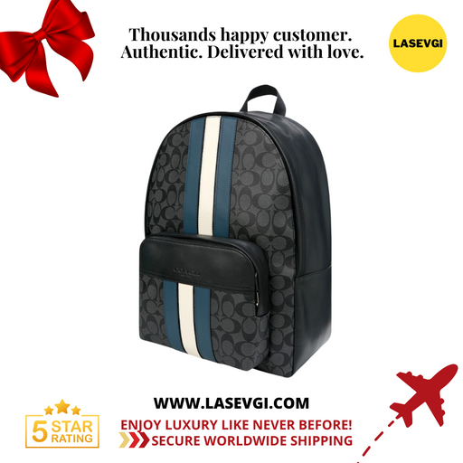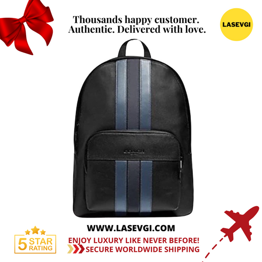 🥰 ABOUT THIS BAG COACH Houston Backpack with Varsity Stripe Midnight Nickel 49324 >> Style no: 49324 Signatu...