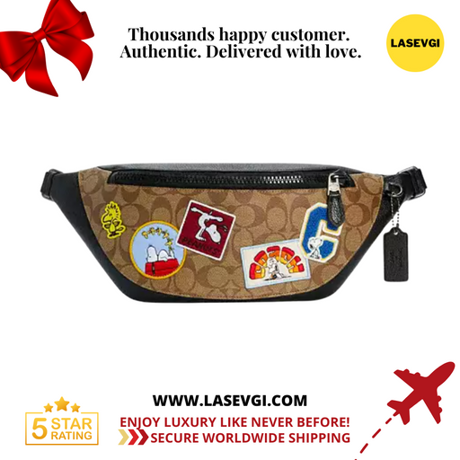 🥰 ABOUT THIS BAG COACH X Peanuts Warren Belt Bag In Signature Canvas With Varsity Patches C4028 >> Style no: C4028 Signature coated canvas ...