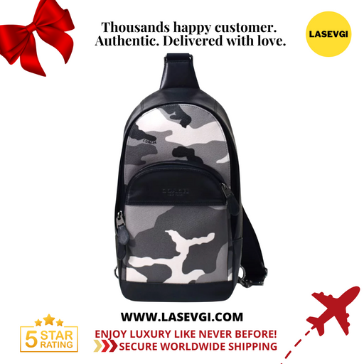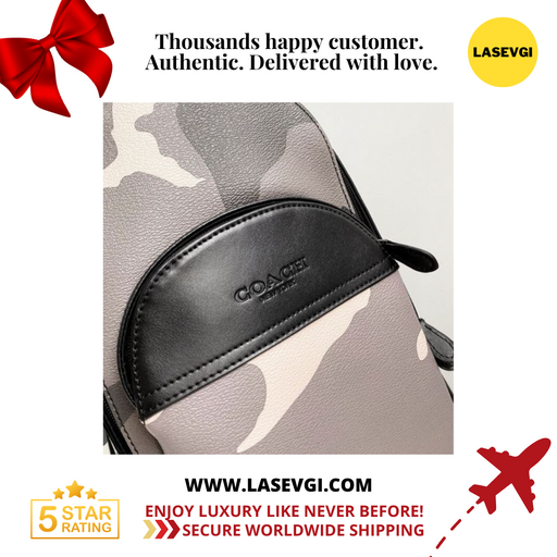 In stockCOACH Houston Pack in Camo Print F75879 >> Style no: 75879 Printed coated canvas and crossgrain leather Inside tech sleeve Zip closure, fabr...