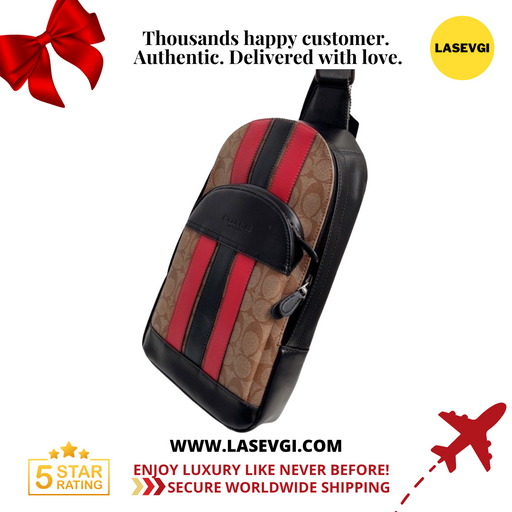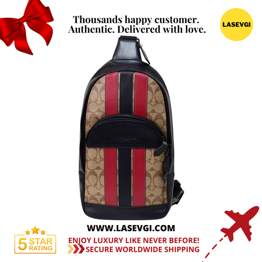 In stockCOACH Houston Pack with Signature Canvas With Varsity Stripe in Red black F85035 >> Style no: F85035 Signature coated canvas and refined cal...