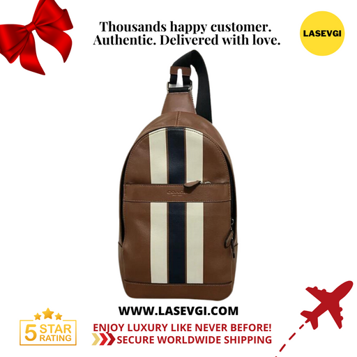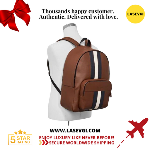 COACH Houston Pack in smooth leather with Varsity Stripe-Brown/Black- 23215