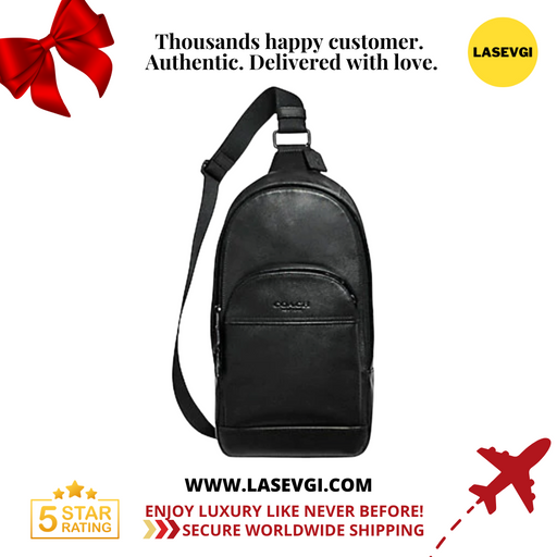 In stockCOACH Charles Pack Black F49312 >> Style no: F49312 Smooth calf leather Inside tech sleeve Zip closure, fabric lining Adjustable strap for ...
