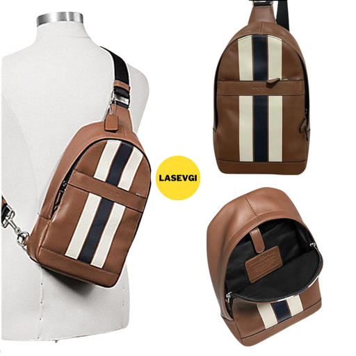 In stock🥰 ABOUT THIS BAG COACH Houston Pack in smooth leather with Varsity Stripe-Brown/Black- 23215 >> Style no: 23215 Soft pebble leather Inside m...