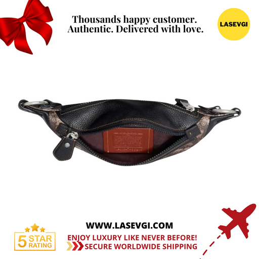 COACH Warren Belt Bag Signature Canvas with Coach Script 76795 Signature coated canvas and smooth calf leather Inside multifunction pocket Zip cl...