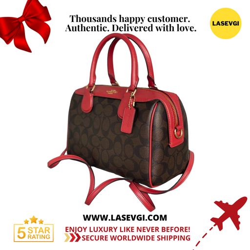 Out of stockCOACH Ivie Bennett Mini in Signature Canvas Red Multi - F32202 >> Style no: F32202 Signature coated canvas with smooth leather details Insid...