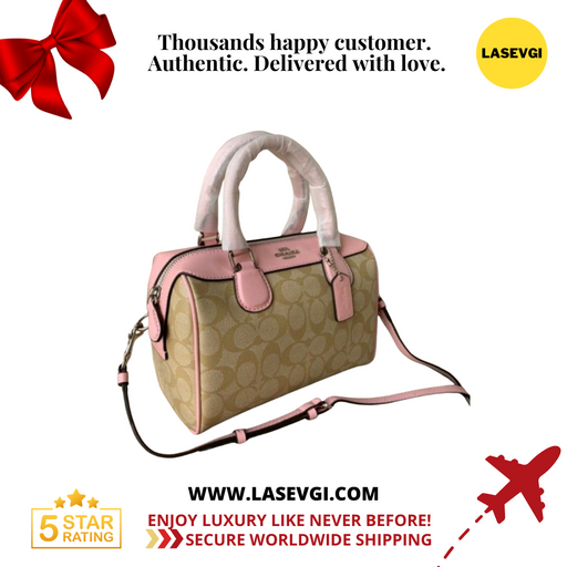 Out of stockCOACH Ivie Bennett Mini in Signature khaki Pink - 58312 >> Style no: 58312 Signature coated canvas with smooth leather details Inside zip an...