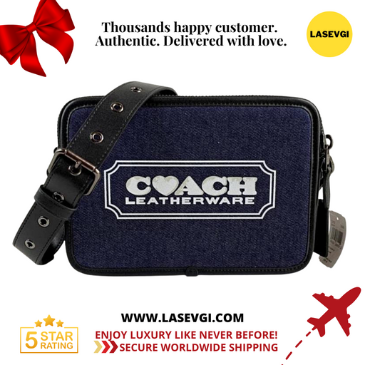 Out of stock🥰 ABOUT THIS BAG>>Coach Charter Belt Bag 7 In Signature Denim - Blue >> Style no: CA075 ✅Micro Signature jacquard and refined calf leat...
