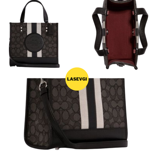 ABOUT THIS BAG>> COACH Dempsey Tote 22 In Signature Jacquard Coach Patch Smoke Black>> Style no: C7083 ✅Signature Jacquard & Refine...