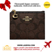 COACH Snap Card Case Wallet in Signature Canvas Brown Black F78002