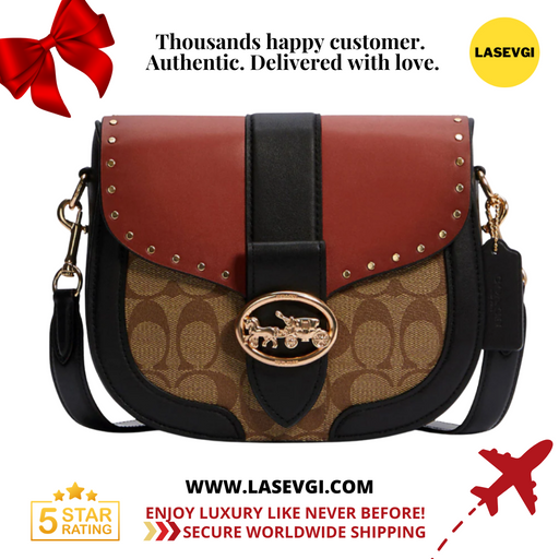 ABOUT THIS BAG>> COACH Georgie Saddle Bag In Colorblock Signature Canvas With Rivets / Terracota>> Style no: C3593 ✅Signature coat...