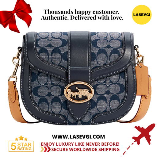 ABOUT THIS BAG>> COACH Georgie Saddle Bag in Signature Chambray>> Style no: C4066 ✅Signature coated canvas and refined calf leathe...