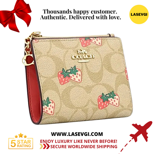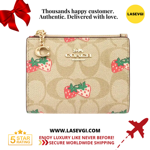 🥰 ABOUT THIS BAG COACH Snap Card Case wallet with strawberry print 91199 >> Style no: 91199 Printed coated canvas Three credit card slots F...