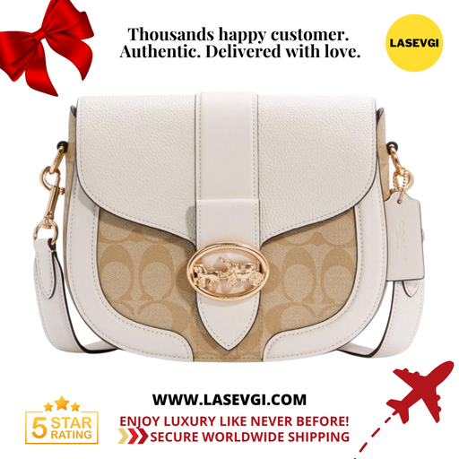 COACH Georgie Saddle Bag in Signature Canvas - Chalk/White Style no: C2806 Signature coated canvas, smooth leather and refined pebble le...