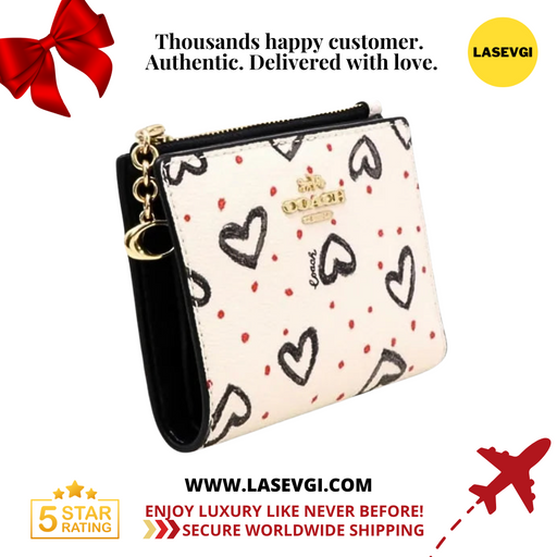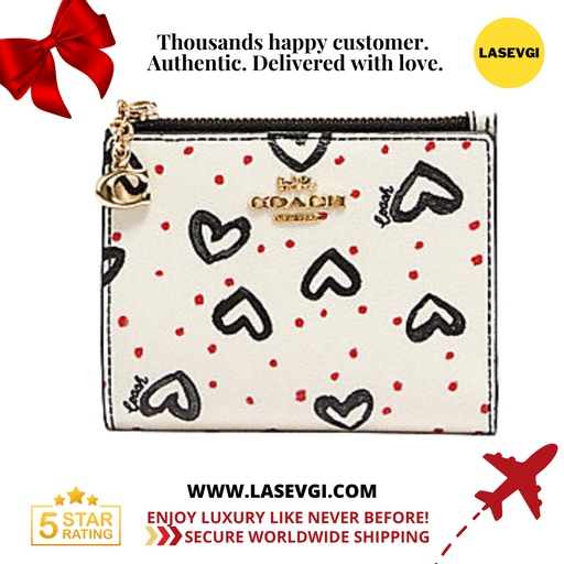 COACH Snap Card Case in Crayon Hearts Print 91058 >> Style no: 91058 Printed coated canvas Three credit card slots Full-length bill compart...