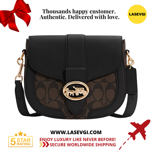 In stockCOACH Georgie Saddle Bag in Signature Canvas - Brown Black Style no: C2806 Signature coated canvas, smooth leather and refined pebble l...
