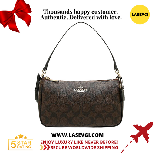 Coach Top Handle Pouch in Signature Canvas brown black F36674✅Signature coated canvas✅Inside multifunction pocket✅Zip-top closure, fabric lin...