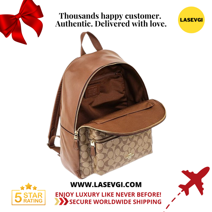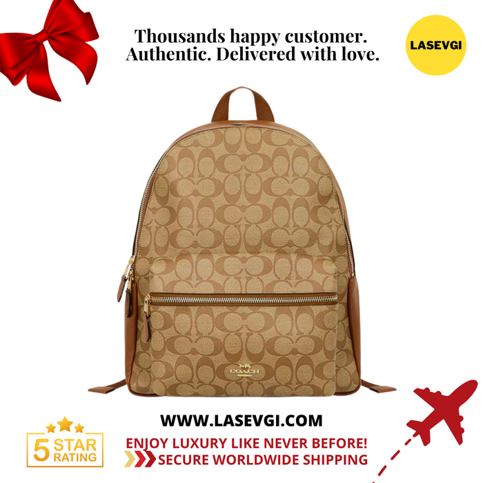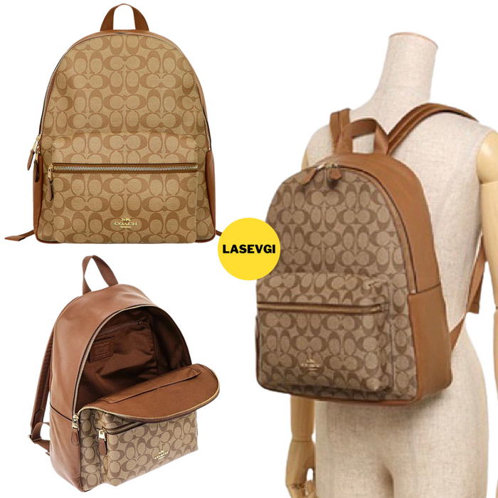 >> COACH Backpack Large Charlie Backpack In Signature Khaki / Saddle Brown