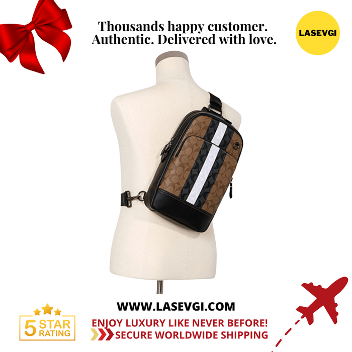 COACH Graham Pack in Colorblock Signature Canvas with Varsity Stripe Brown C3229